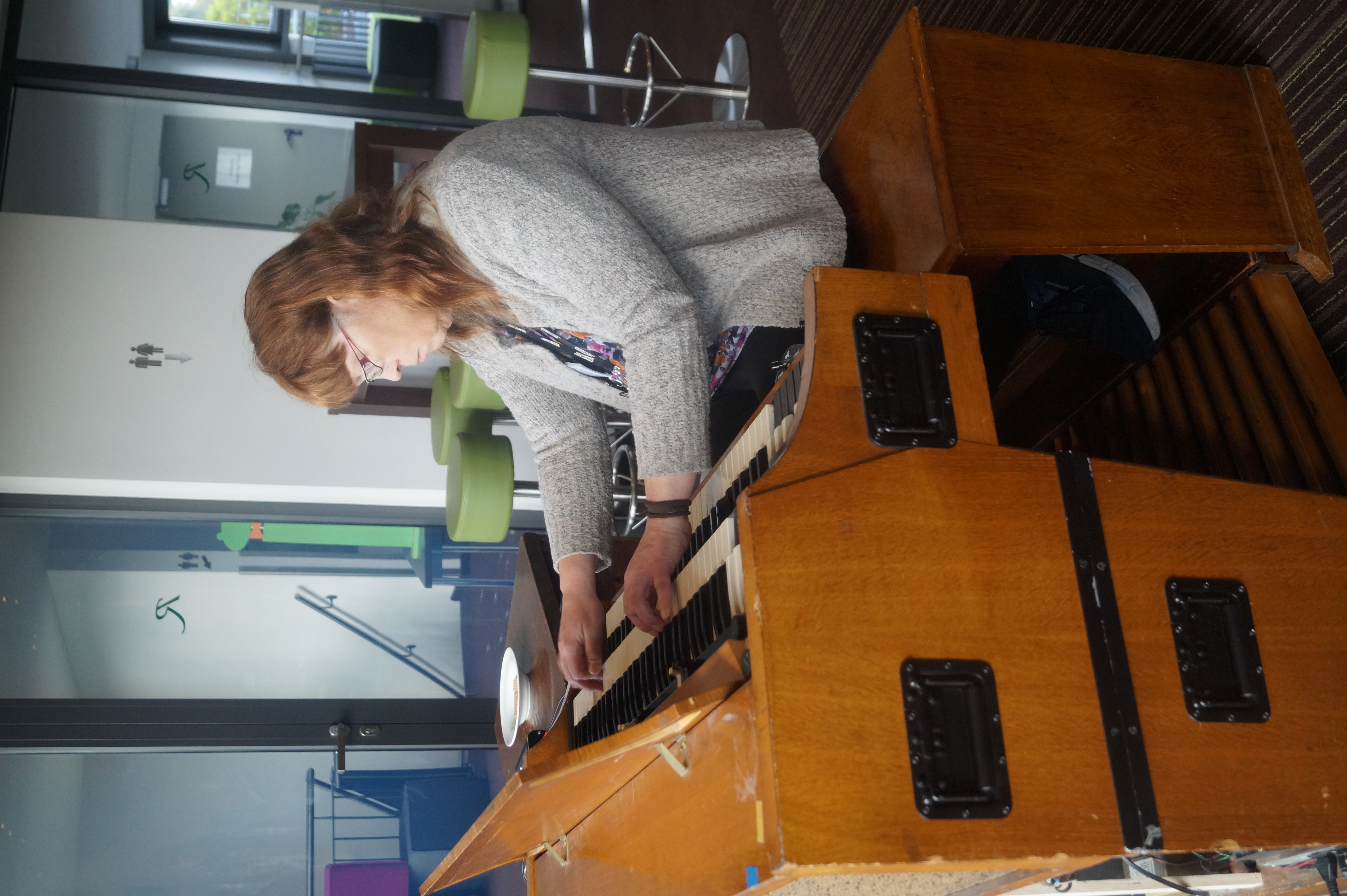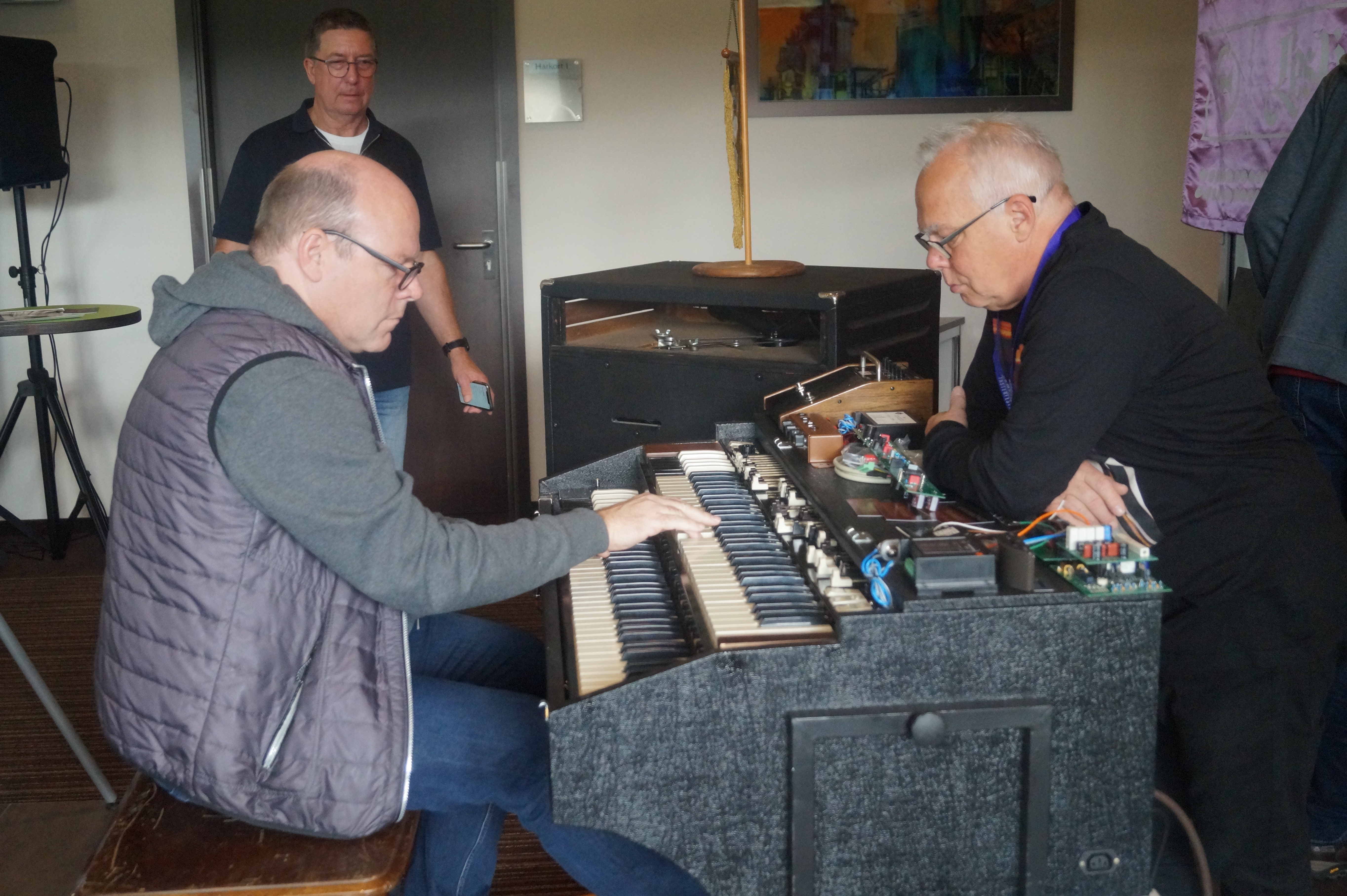 In unserem Ausstellungsbereich zogen unsere Orgeln sowohl das musikalische als auch das technische Interesse vieler Besucher auf sich, und manch einer nutzte die Gelegenheit, darauf zu spielen. Beim Blick in die Gesichter der Besucher unserer Ausstellung zeigte sich wieder einmal die magische Kraft der Original-Hammondorgel. Schon nach wenigen Takten lächelte nahezu jeder, und der "Wow-Effekt" war jedem deutlich anzusehen. Bei der mittlerweile zehnjährigen Verenice Heitsch war die Begeisterung für die HAMMOND seit dem Tastenfestival 2023 ungebrochen - sie hatte seither „A Whiter Shade Of Pale“ geübt und freute sich, es nun auf einer richtigen HAMMOND spielen zu können. Für die virtuose englische Organistin und Pianistin Jean Martyn (sie besitzt mehrere HAMMONDs, war bei „Britains Got Talent“ im Finale) war die Begegnung mit der HAMMOND ein fragloser Höhepunkt - wenige Tage später stand auf ihrer Internetseite ein Photo mit ihr an der A100 und dem Text: „Thank you to you all ‚1 million views‘ und YOU made it possible.“